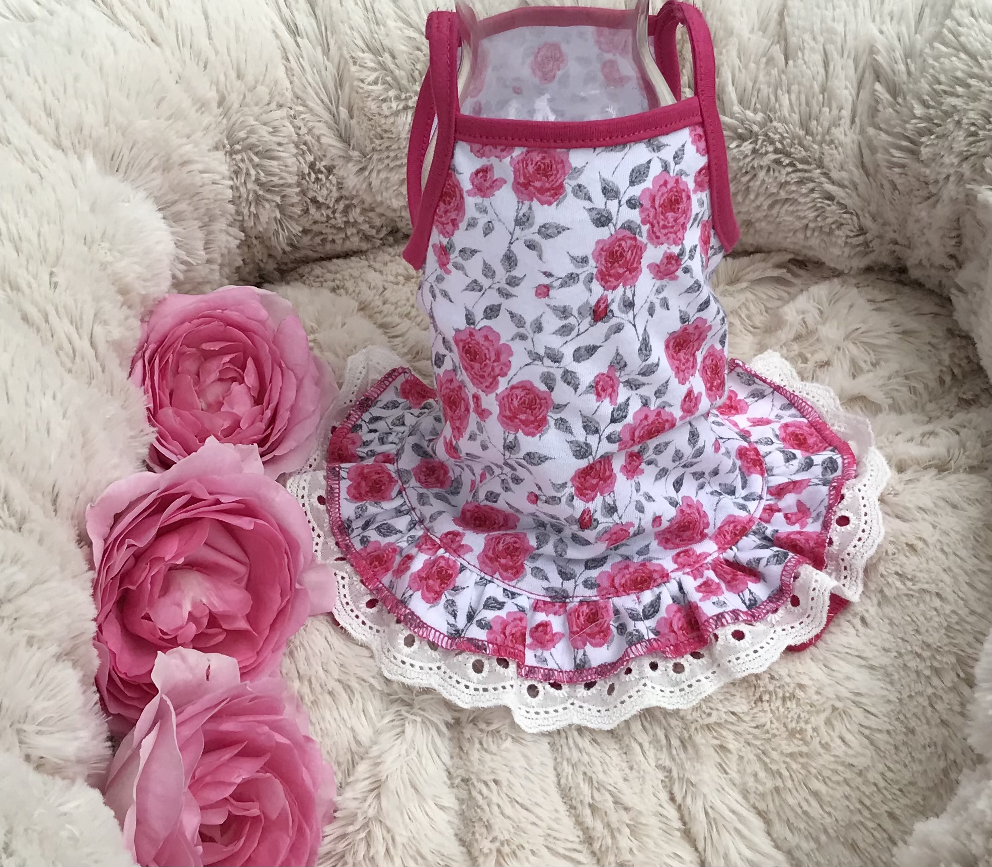 Halsumfang ca. 24-27 cm,Brustumfang ca 36-40 cm,Rückenlänge des Hundes 28-32cm,Gewicht des Hundes ca .3,5-4,5kg, Länge Inkl.Rüschen ca.28-29 cm