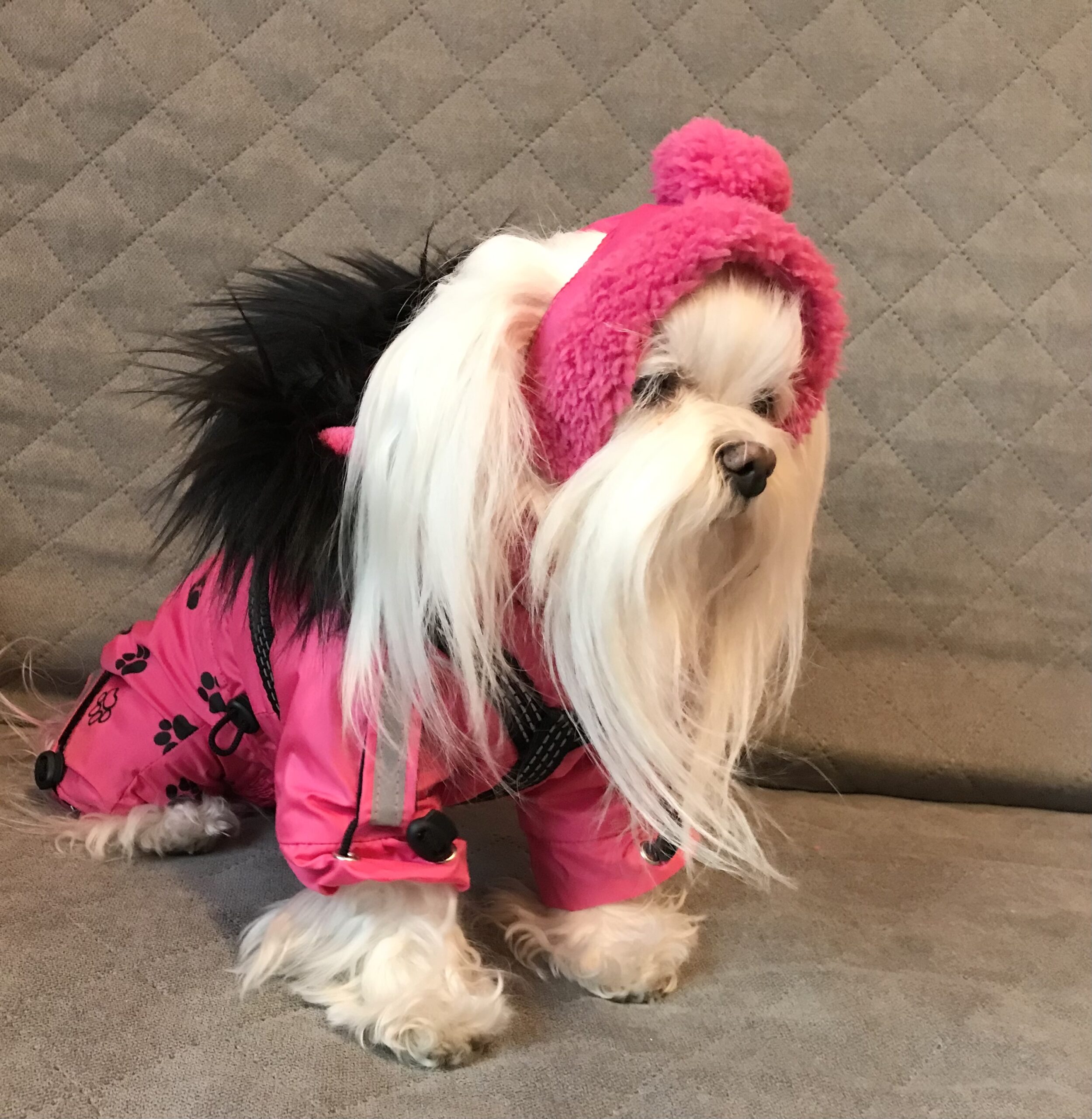 Das Mäntelchen ist aus Nylon Stoff  genäht und hat  Innenfutter.Beim Regen bleibt auch der Bauch sauber.