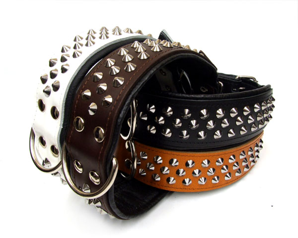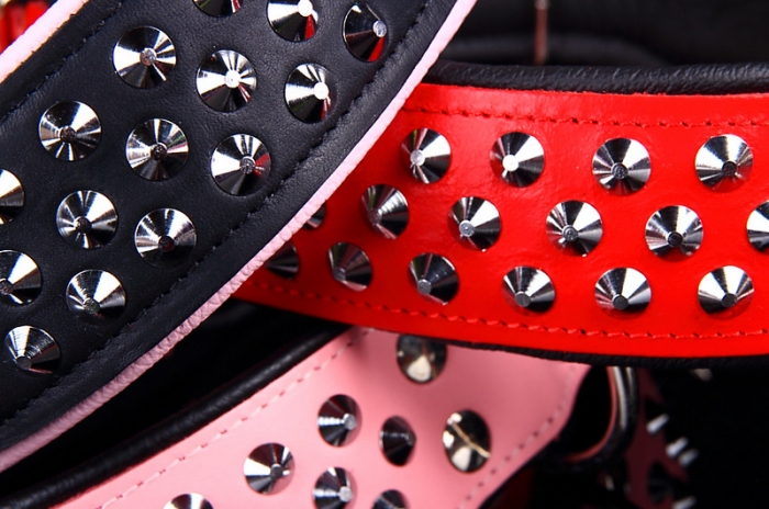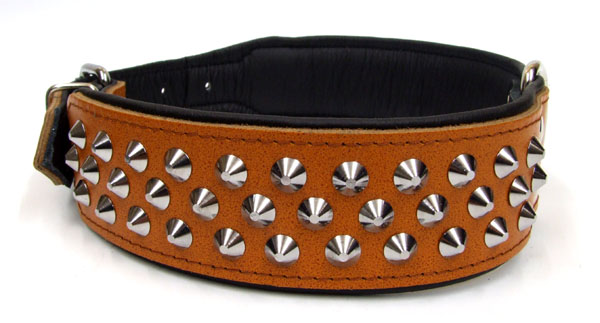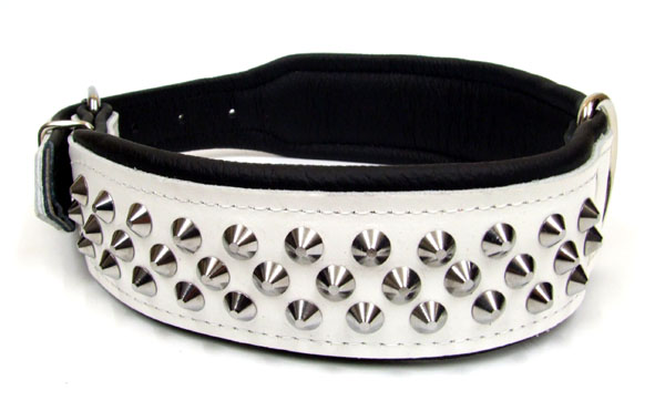 Das Halsband ist aus robustem, ca 3mm starkem Ledergurt gefertigt, Innenseite fellschonend und zum angenehmen Tragen mit schwarzem Softleder gepolstert . Hochwertiege Verarbeitung! Zusätzlich ist das Halsband sehr effektvoll mit Nieten verziert. Farbe :zur Wahl