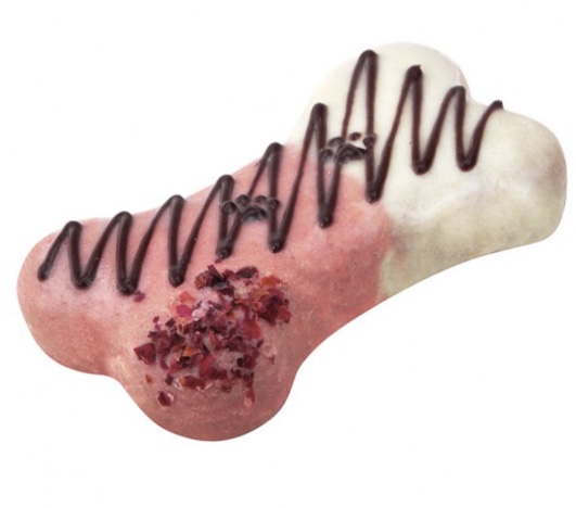 Die Delikatesse gibt es in verschiedenen Geschmacksrichtungen. Der Kuchen kann sofort (für große Hunde) oder in kleinere Teile geteilt werden.