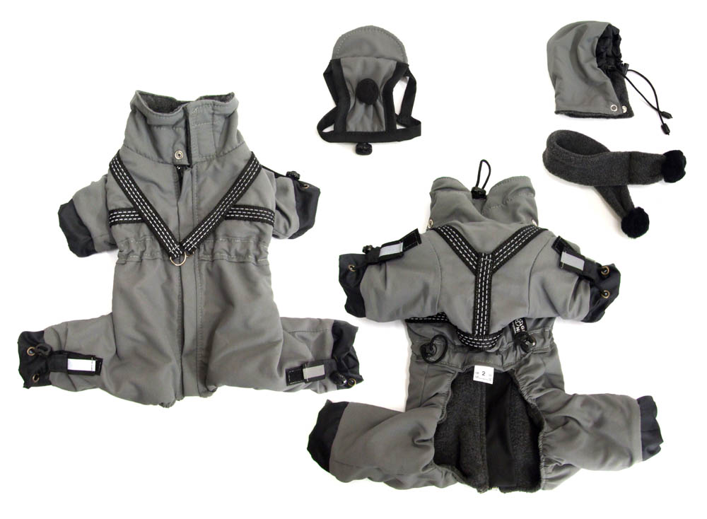 Hundemantel mit Kaputze,Geschirr,Mütze und Schal