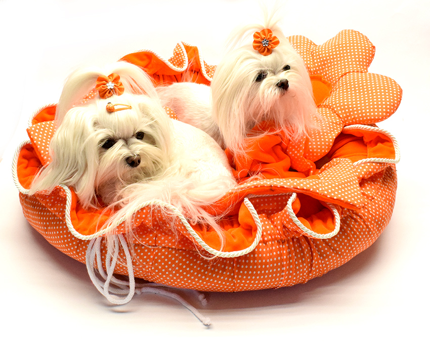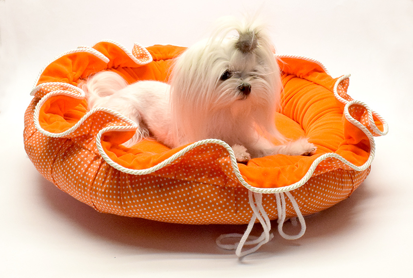 Das Hundebett besticht in seinem einzigartigem Design. Es kann beidseitig verwendet werden – der Innenstoff besteht aus kuscheligem Plüschstoff, die Außenseite aus hochwertiger Baumwolle. Mithilfe der angebrachten Bänder kann das Bett zu einer Blumenform zusammengerafft werden. Ohne Raffung expandiert es zu einer größeren Liegefläche für Ihren Hund. Der Bezug ist waschbar und das Innenleben ist herausnehmbar. Das hochwertige Füllmaterial schützt ihren Liebling vor schädlicher Bodenkälte. Das Bett wird Ihr Wohnzimmer oder Schlafzimmer sehr schön schmücken. Das ist ein richtiger Hingucker, welchen wir selbst entworfen und genäht haben.