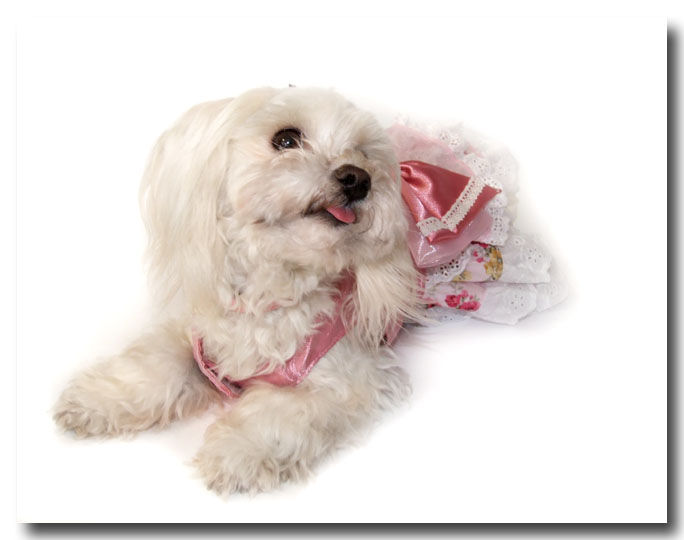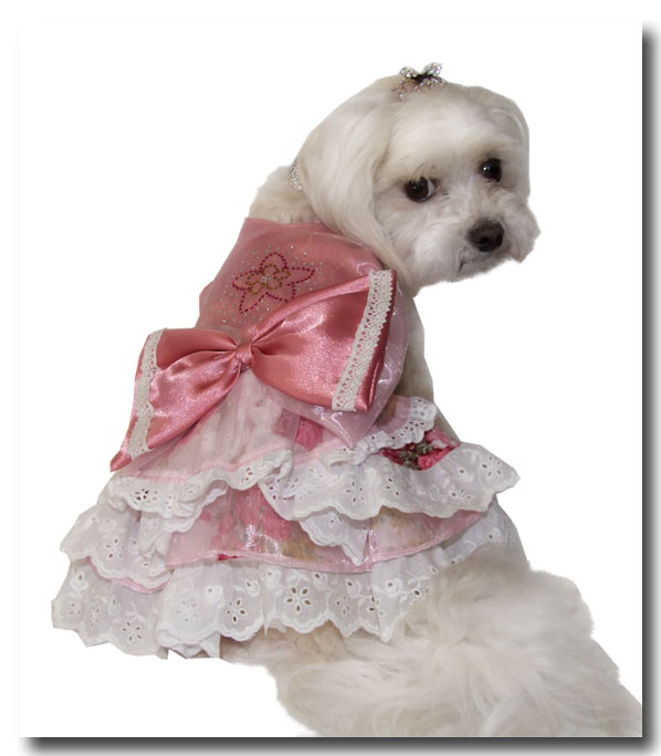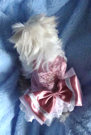 CHANTALLE ist ….so ein süüüüßes Hunde-Kleidchen.Mit viel Spitze,Rüschen,Schleife….und sogar Glitzer-BLUME auf dem Rücken