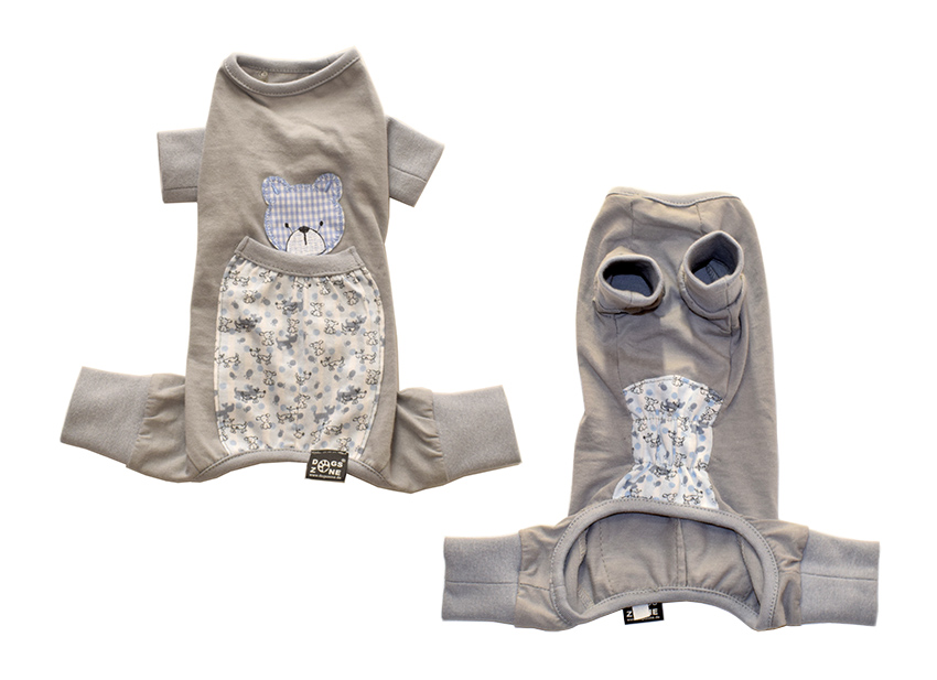 Farbe: Grau,blau mit Großen Teddybär und Hündchen Muster