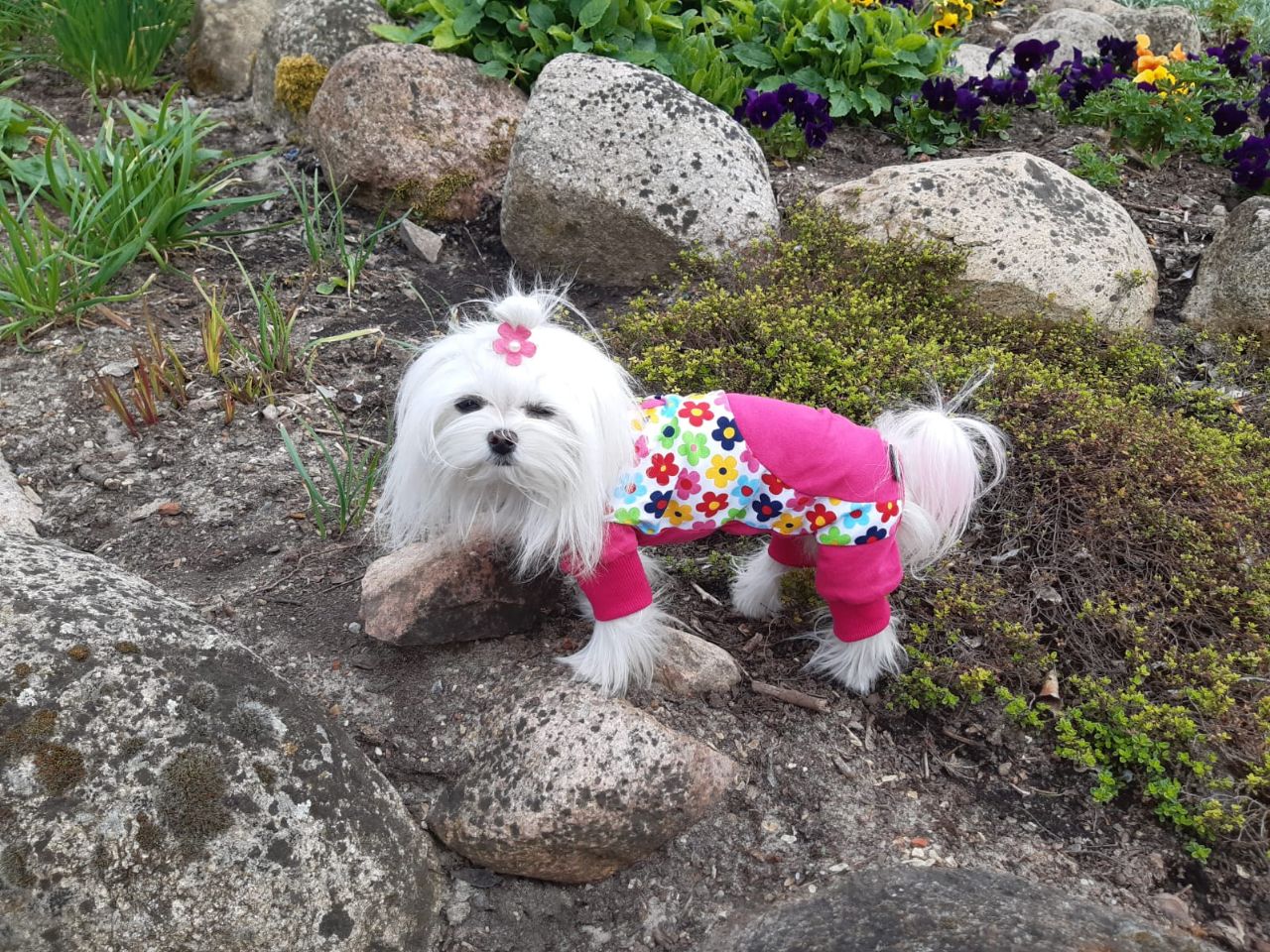Hunde-Pyjama oder Hausanzug. Unsere neue „Erfindung „ extra für Zu Hause. Fast der ganze Bauch bleibt bedeckt.Das soll auch so sein.