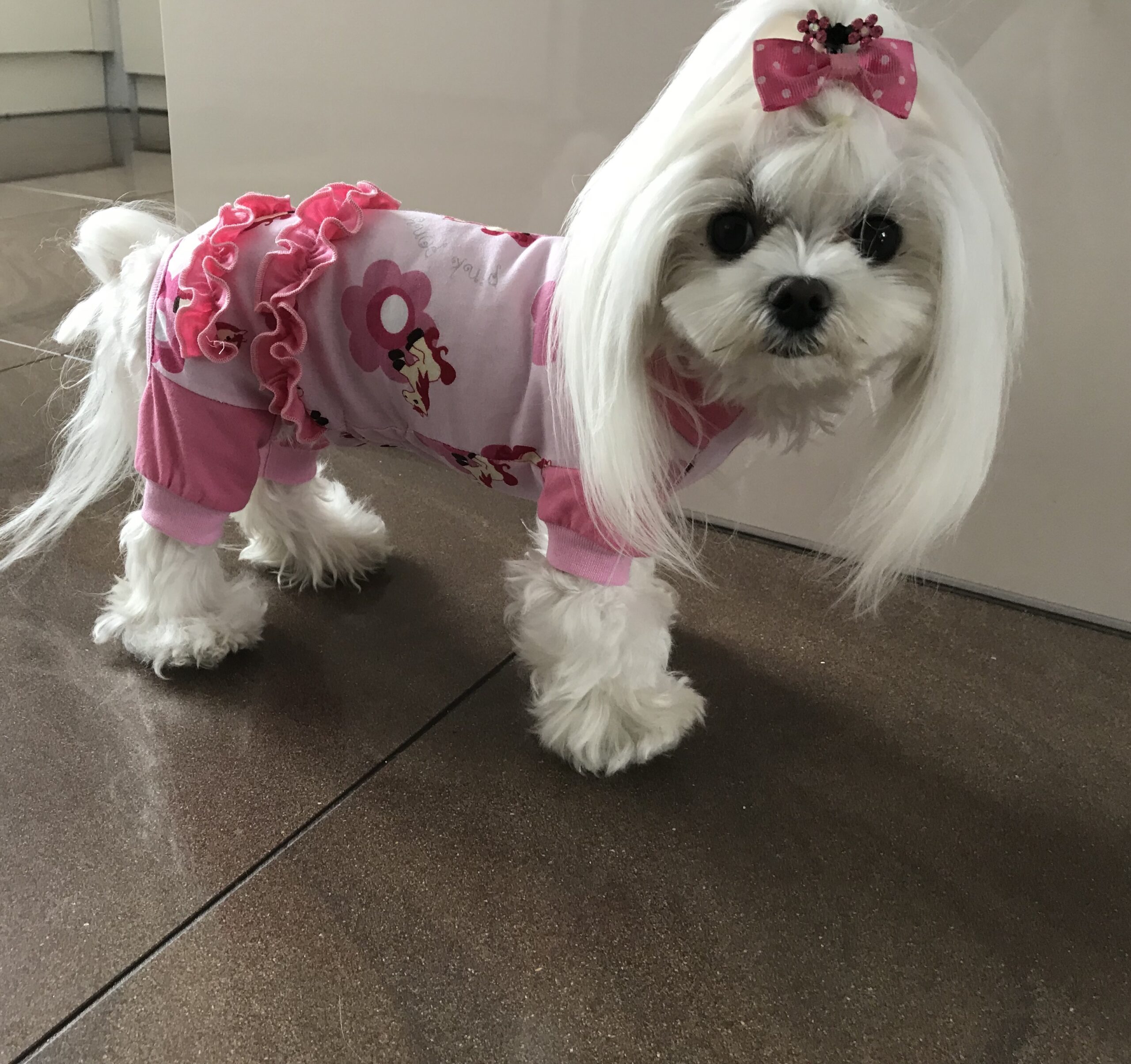 Hunde-Pyjama oder Hausanzug. Unsere neue „Erfindung „ extra für Zu Hause. Fast der ganze Bauch bleibt bedeckt.Das soll auch so sein.