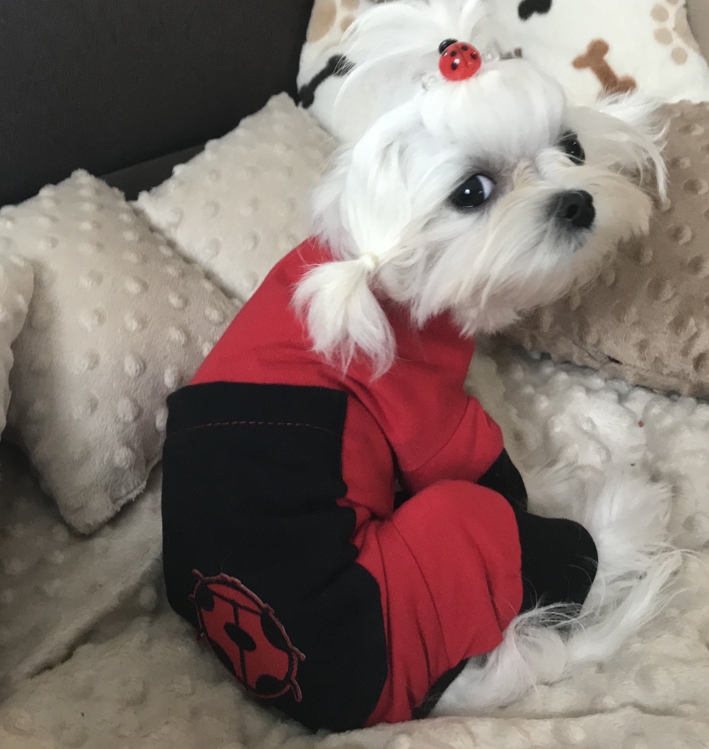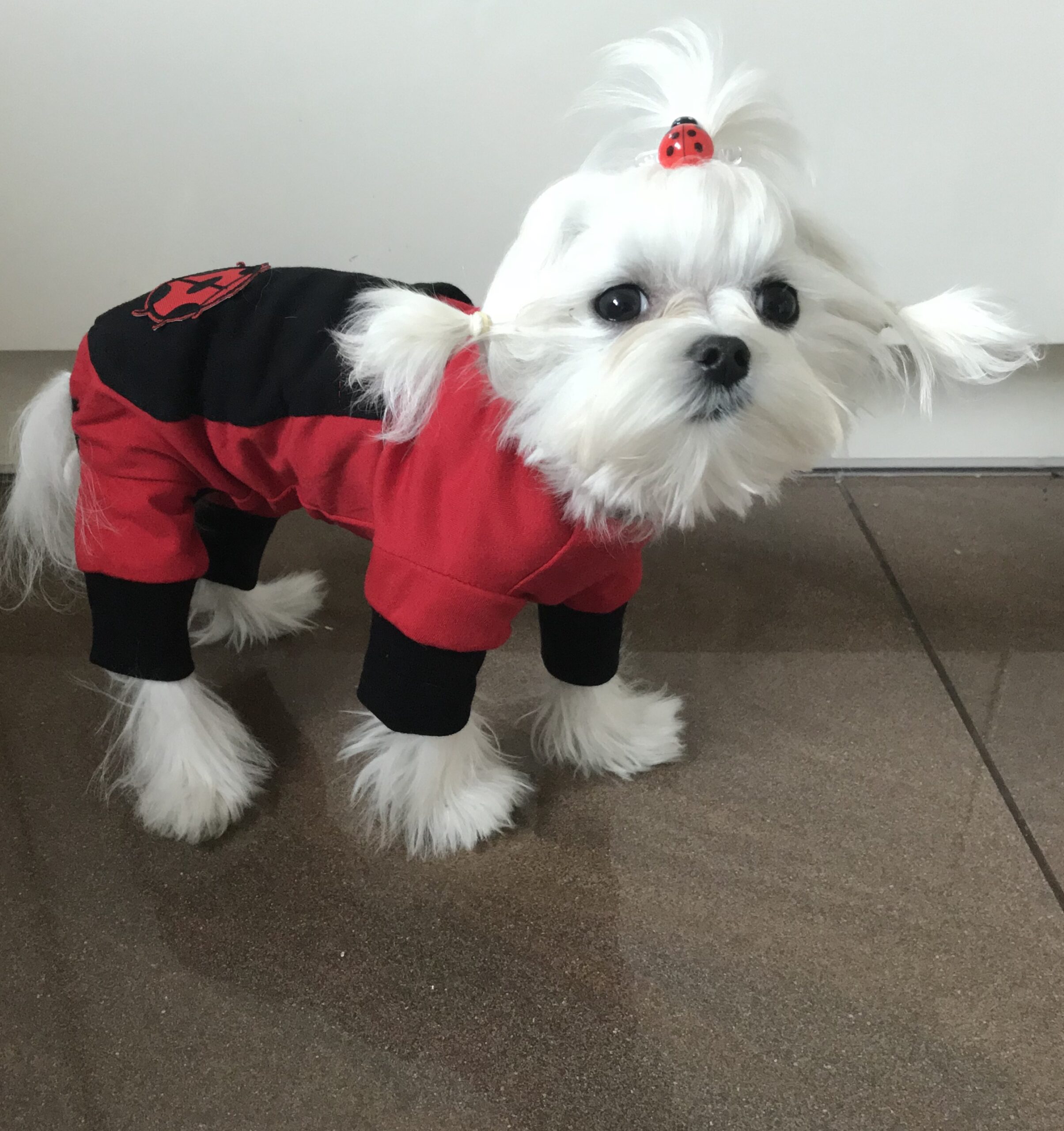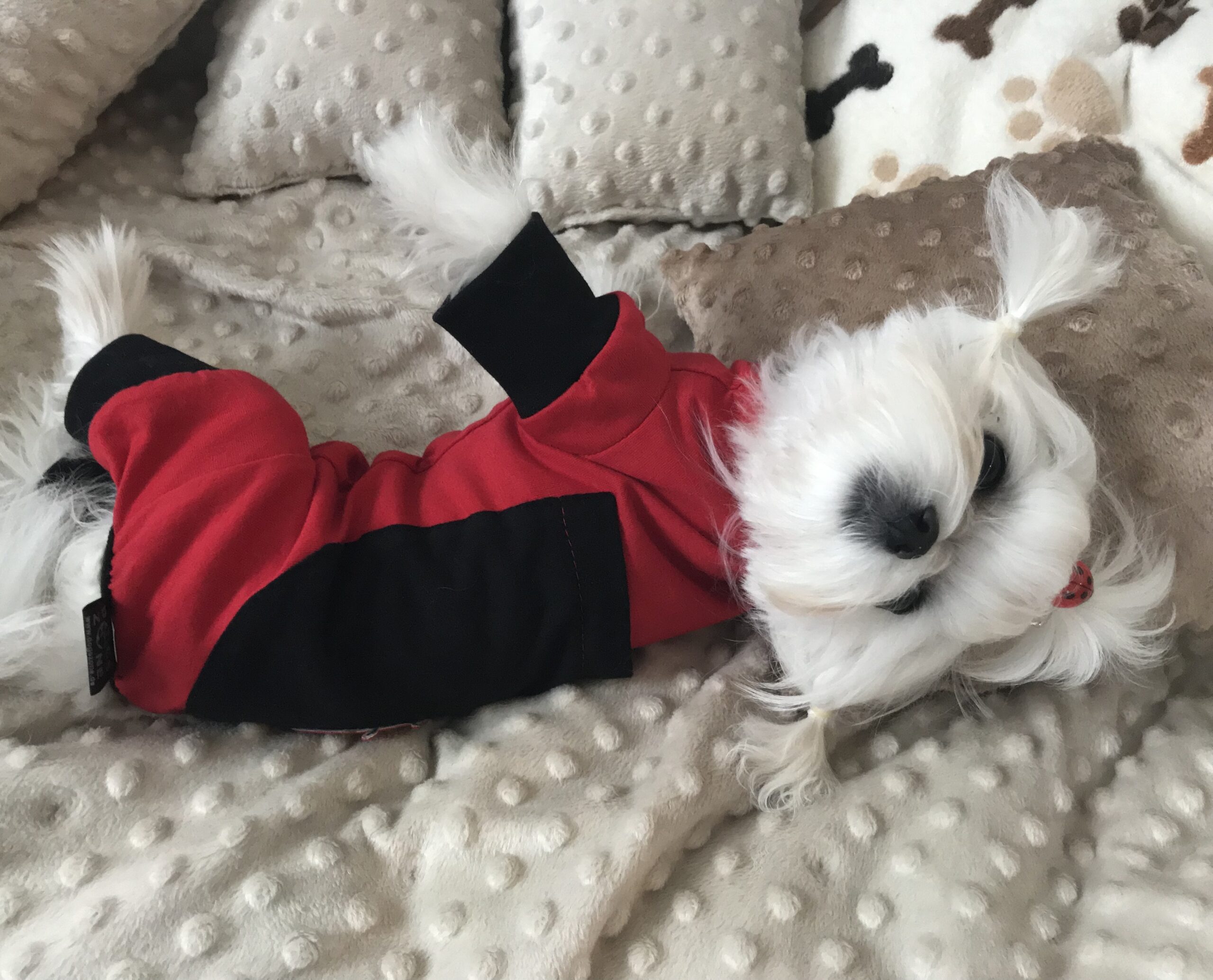 Hunde-Pyjama oder Hausanzug. Unsere neue „Erfindung „ extra für Zu Hause. Fast der ganze Bauch bleibt bedeckt.Das soll auch so sein.