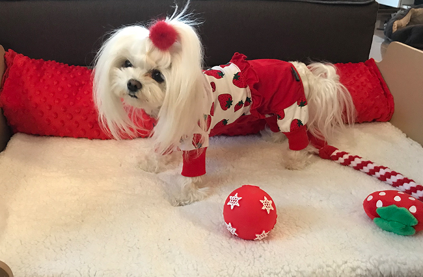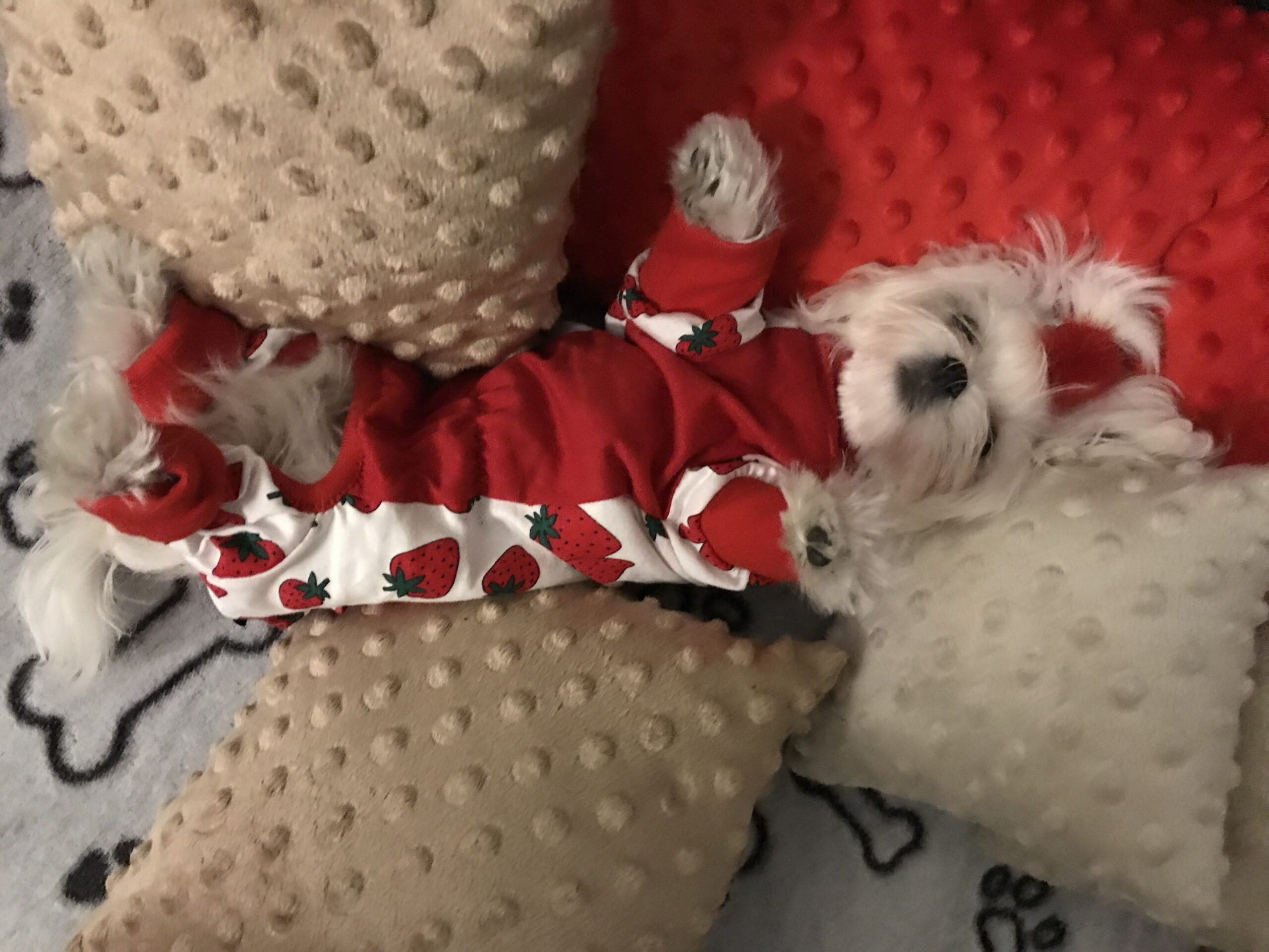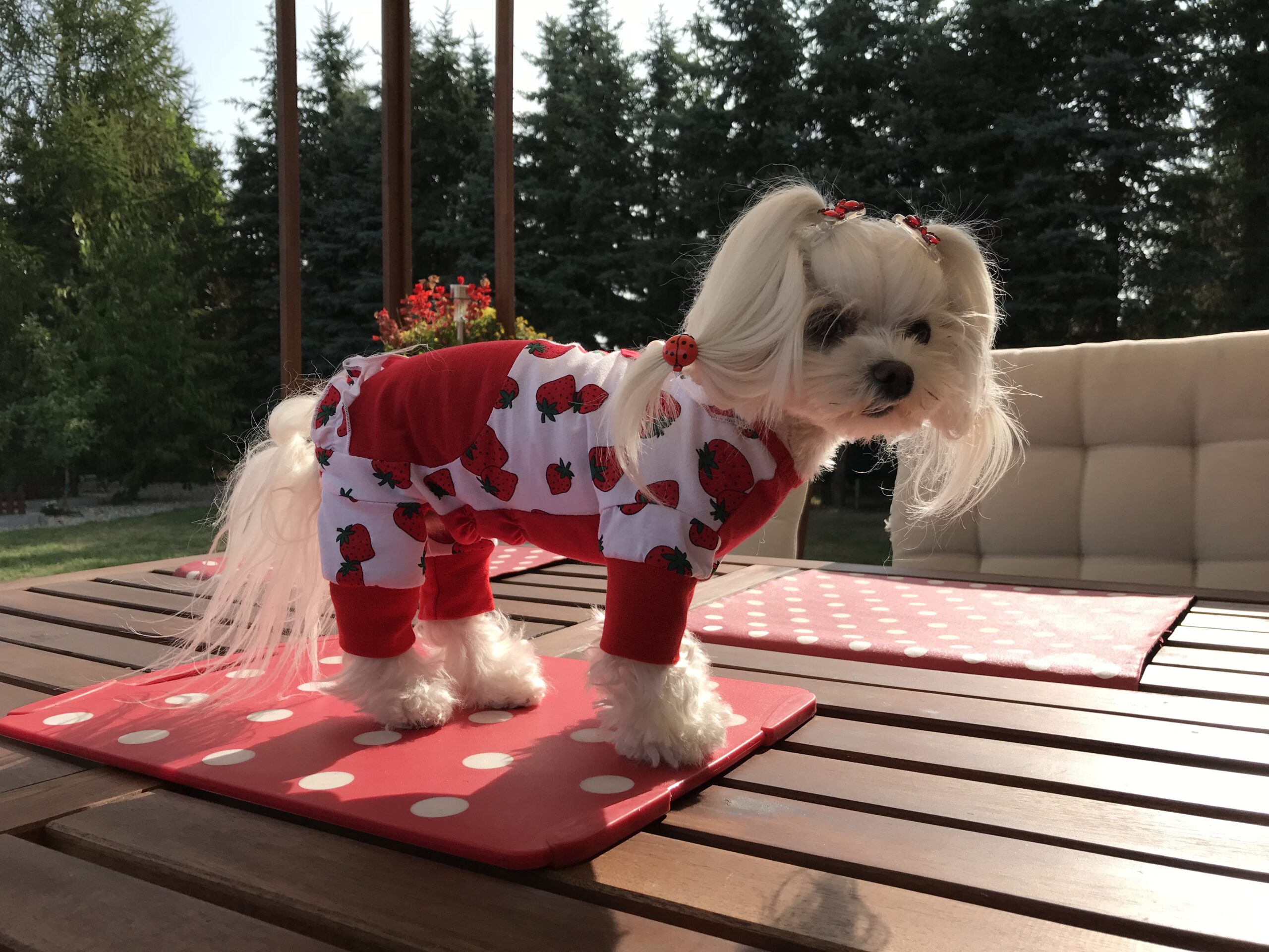 Hunde-Pyjama oder Hausanzug. Unsere neue „Erfindung „ extra für Zu Hause. Fast der ganze Bauch bleibt bedeckt.Das soll auch so sein.