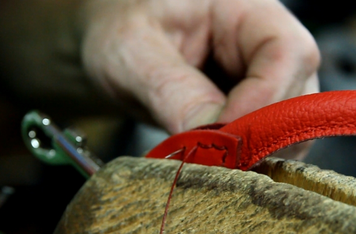 außen ist die Leine aus Rindsnappaleder gemacht