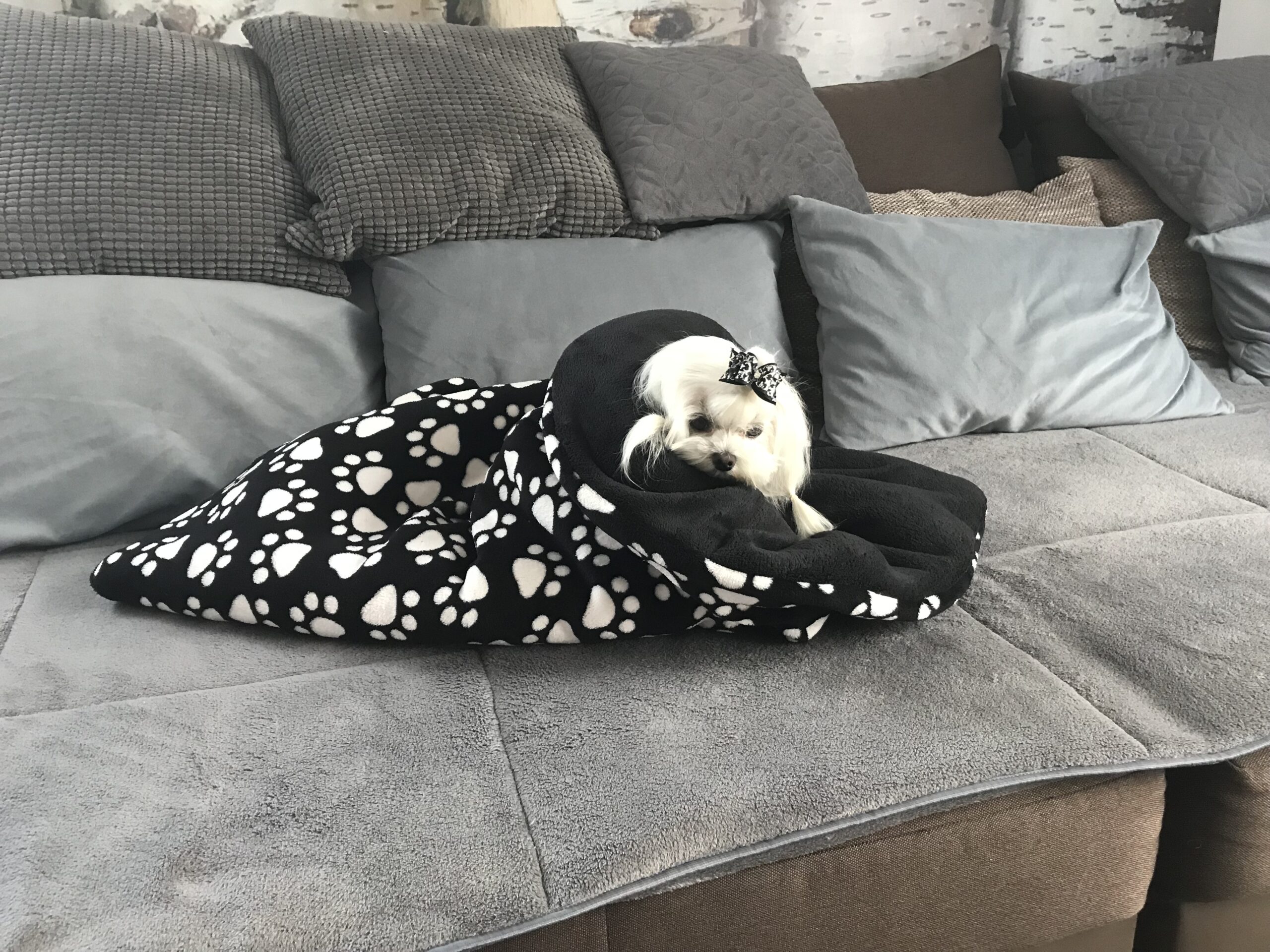Sehr schön,edel und Trendy.Schlafsack für den kleinen Hund.Dick und warm….