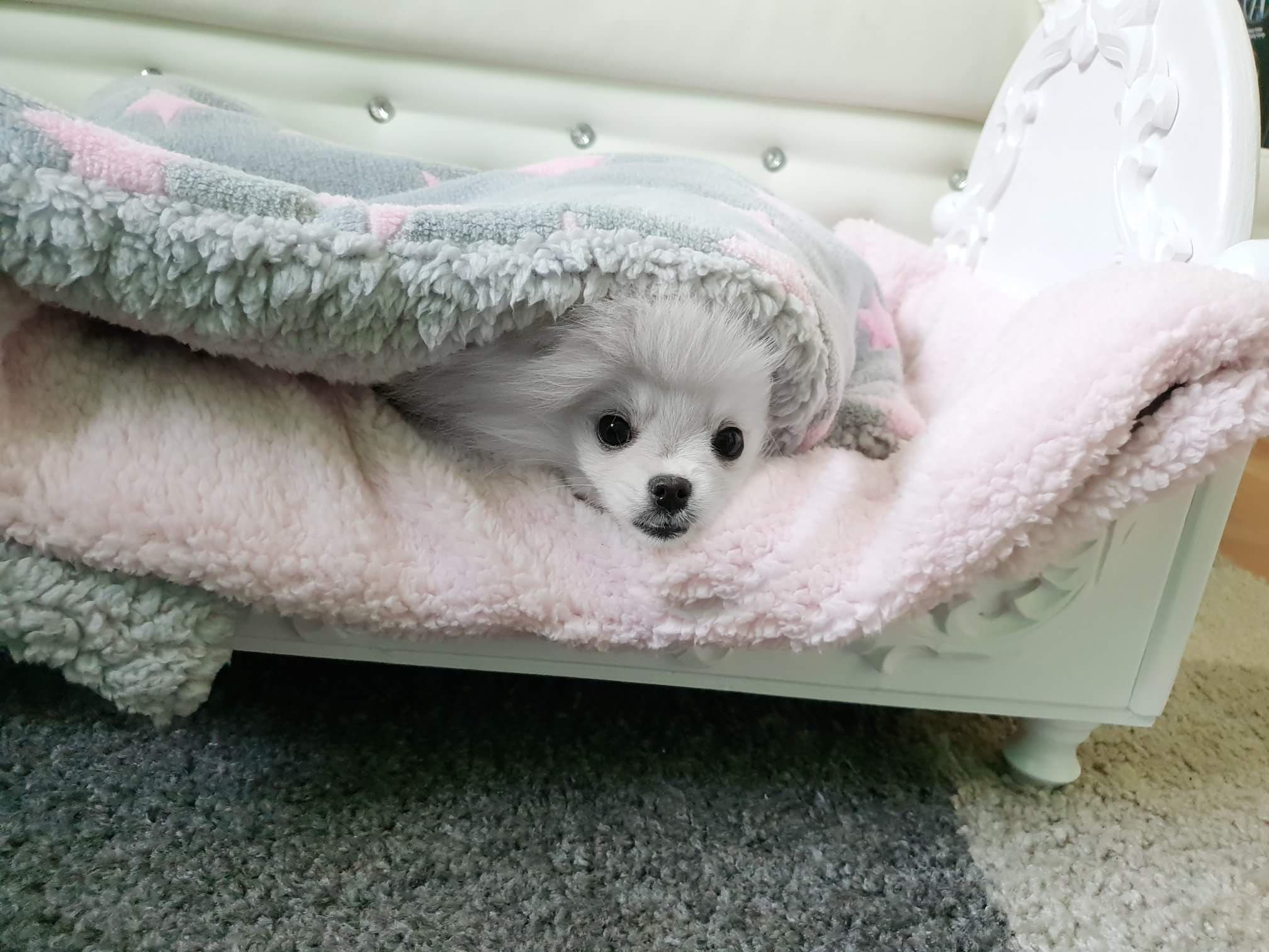 Sehr schön,edel und Trendy.Schlafsack für den kleinen Hund.Dick und warm….