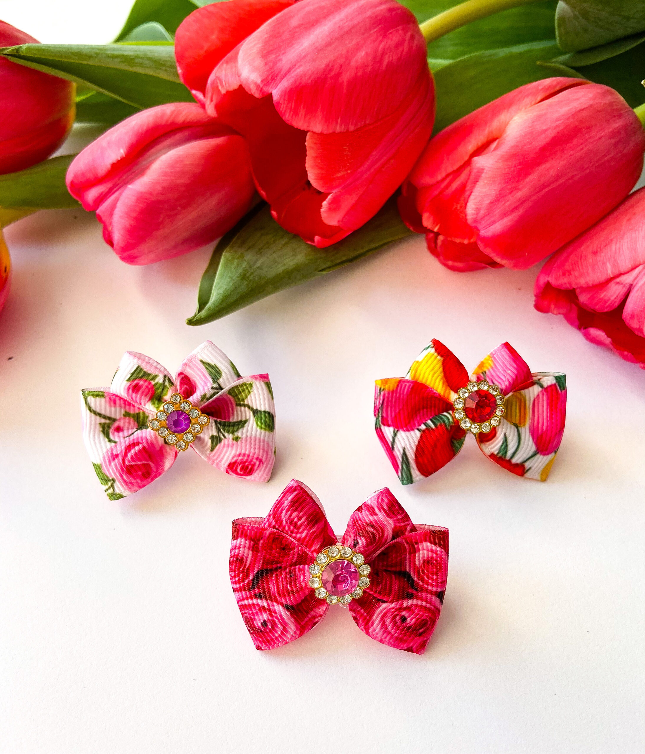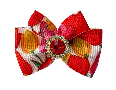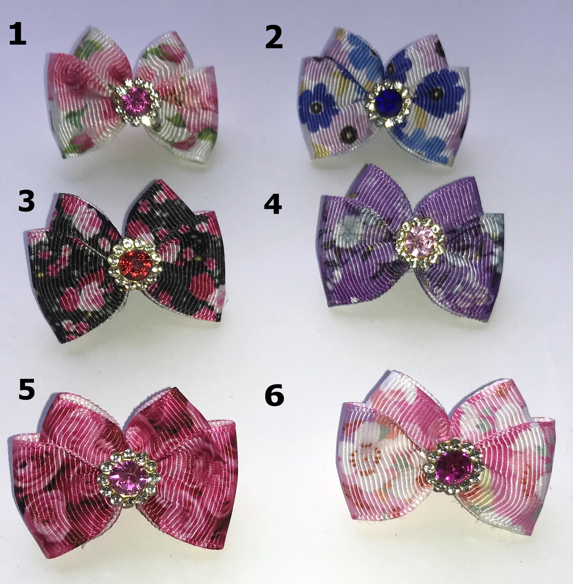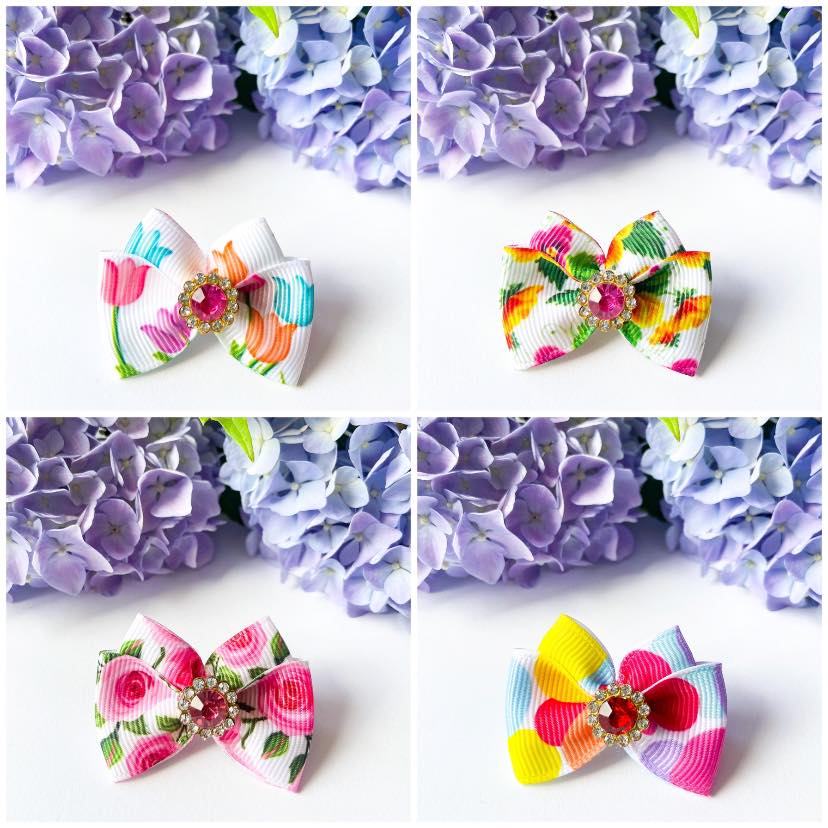 Die Schleife ist ca 4 x 4 cm groß.Die kleine Plastik Spange ist 2,5 cm lang