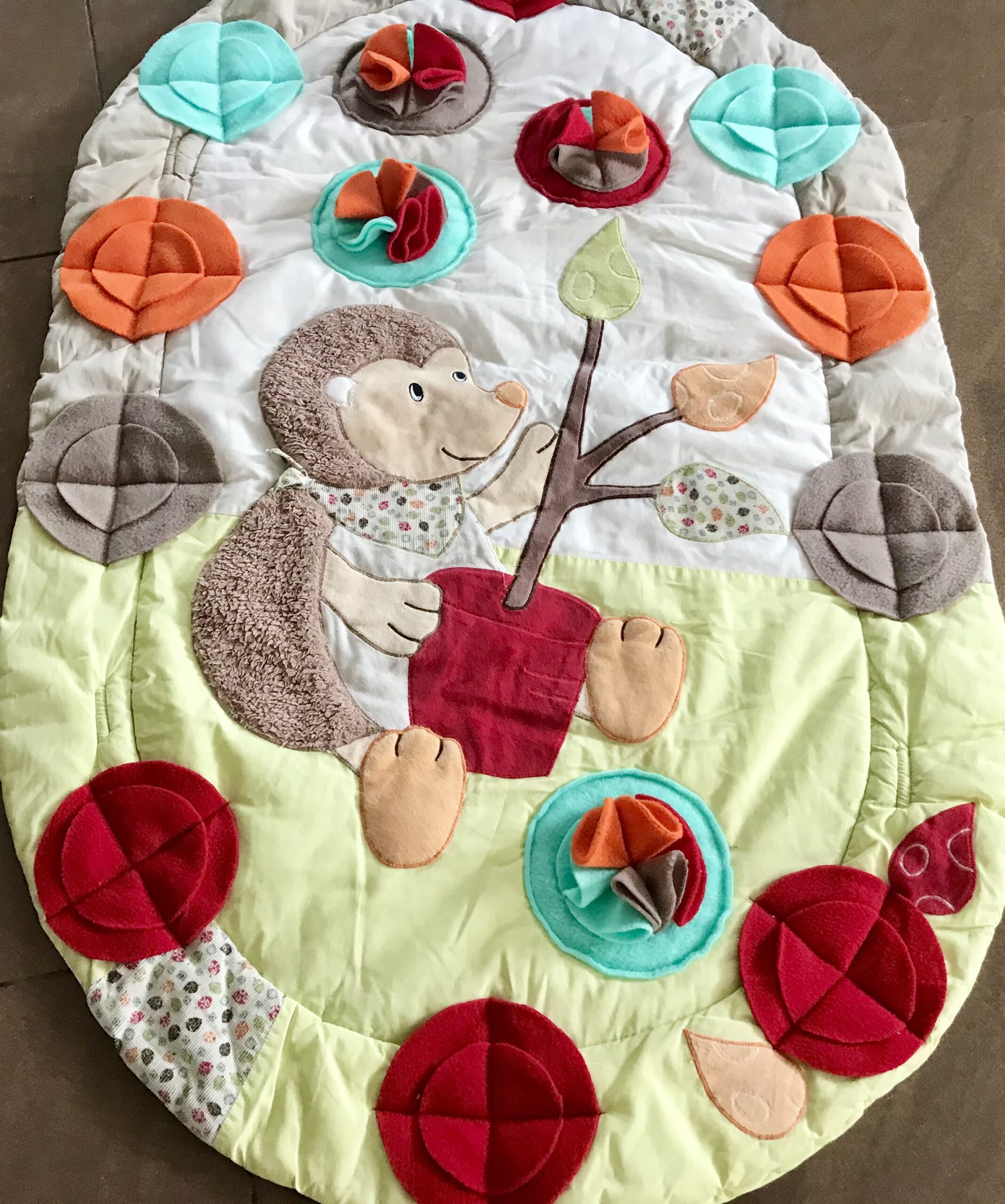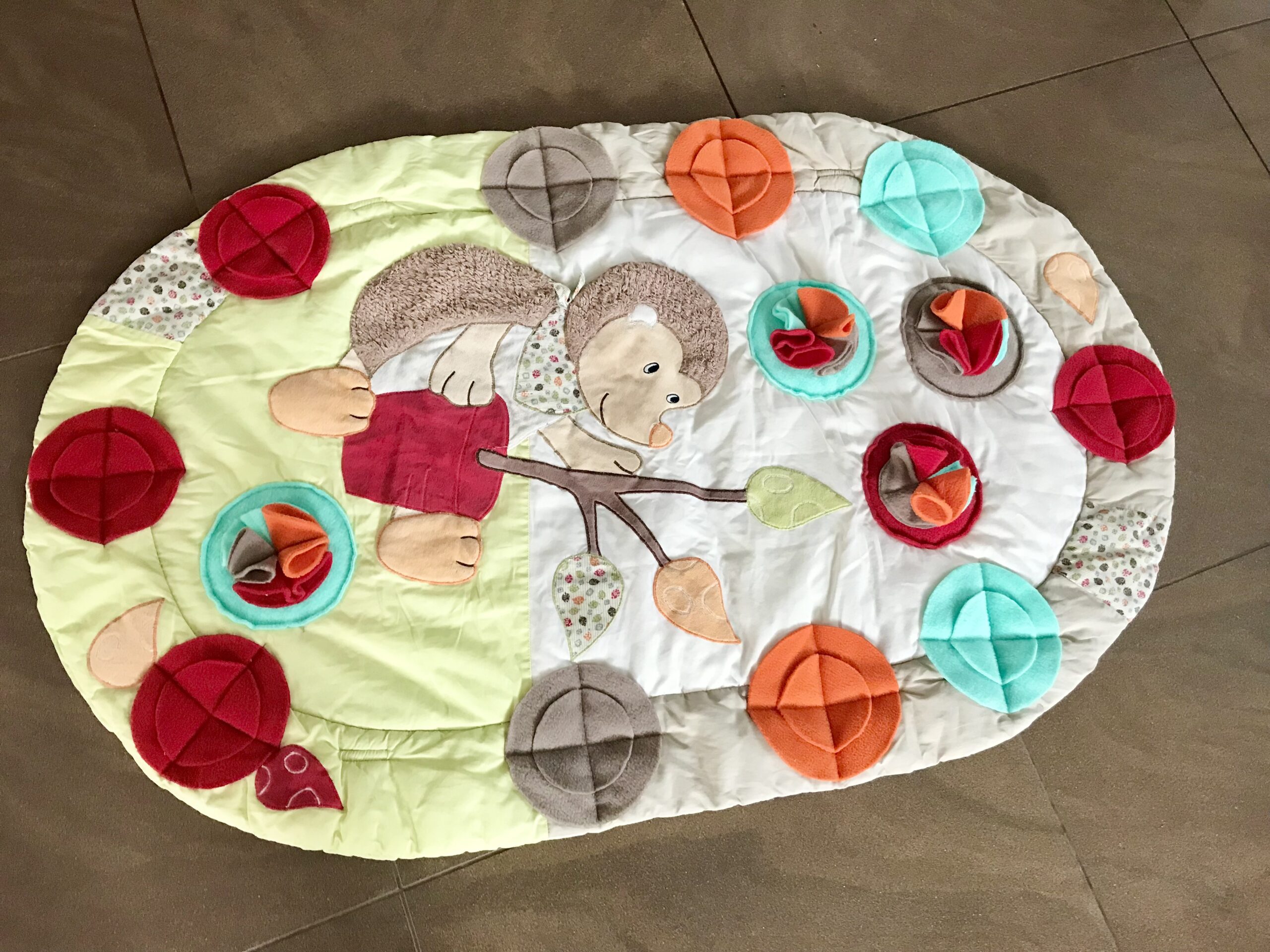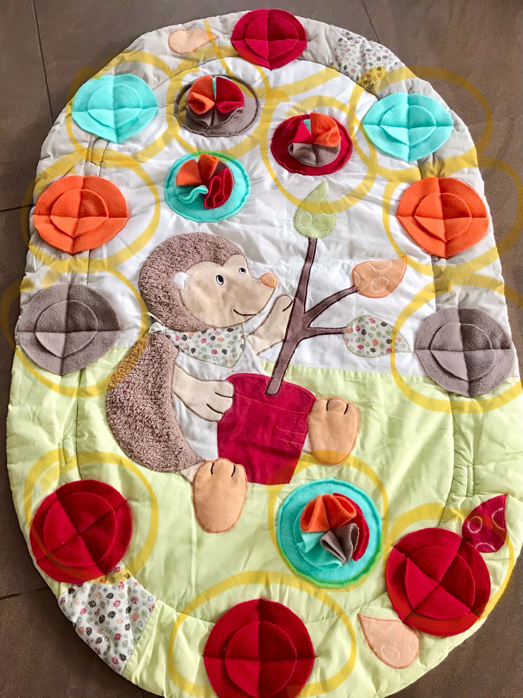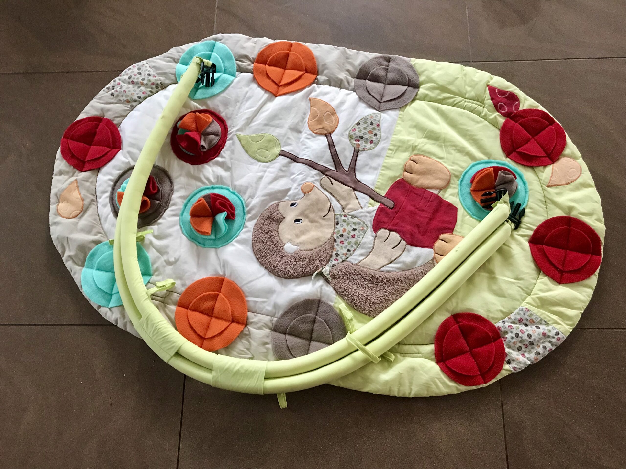 Diese Spielmatte hat noch zusätzlich zwei Rundbögen ohne Spielzeuge.Das gebe ich einfach Gratis dazu