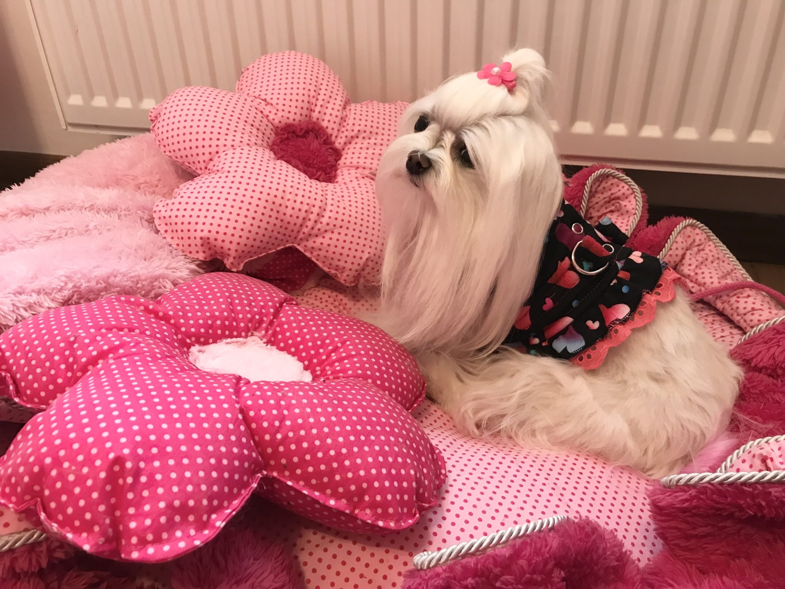 Halsumfang ca 20-24 cm,Brustumfang ca 32-38cm ,Rückenlänge des Hundes 27-30cm,Gewicht des Hundes ca 3-4 Kg, Geschirr Länge ca.27 cm