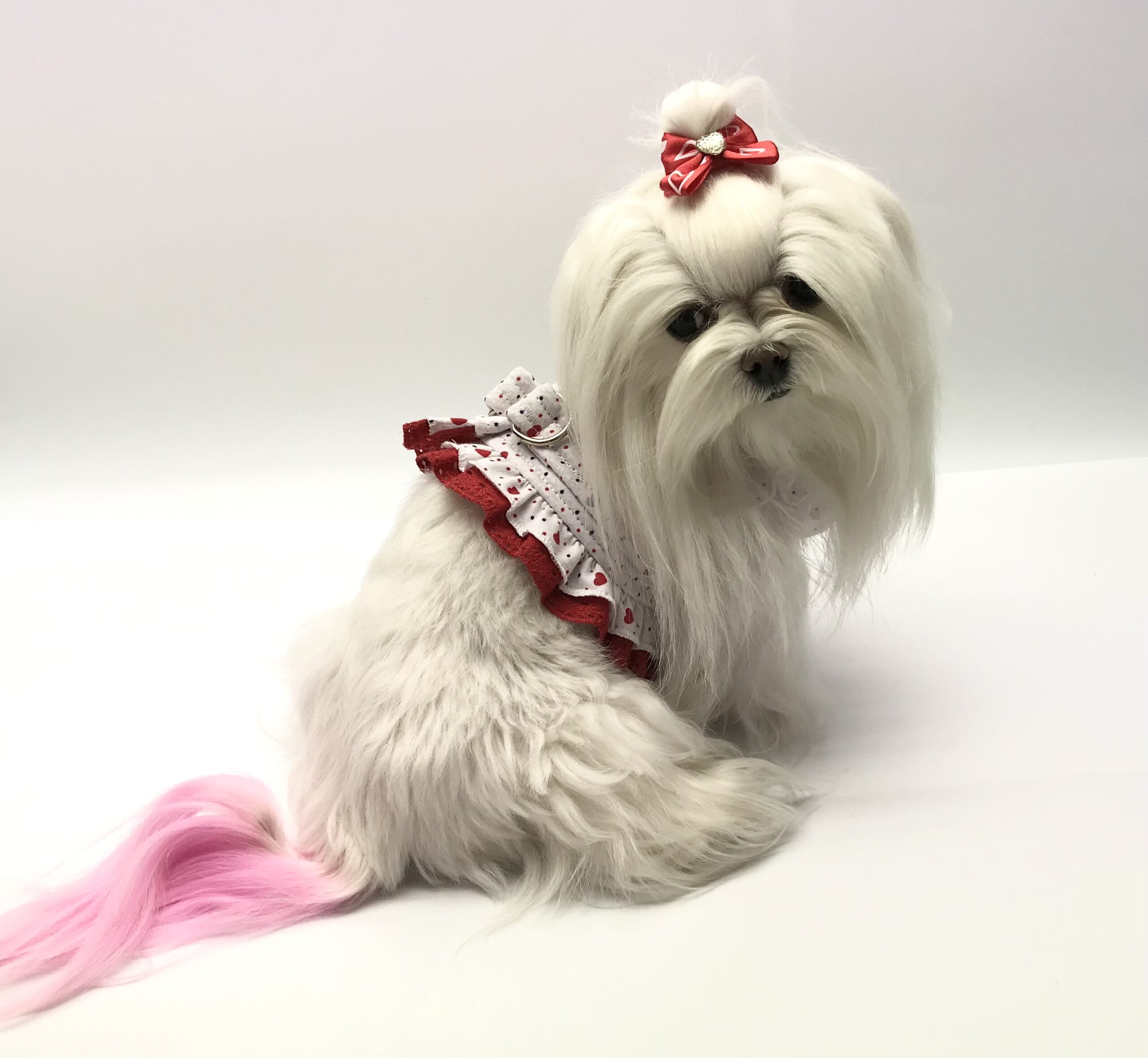 Halsumfang ca 20-24 cm,Brustumfang ca 32-38cm ,Rückenlänge des Hundes 27-30cm,Gewicht des Hundes ca 3-4 Kg, Geschirr Länge ca.27 cm