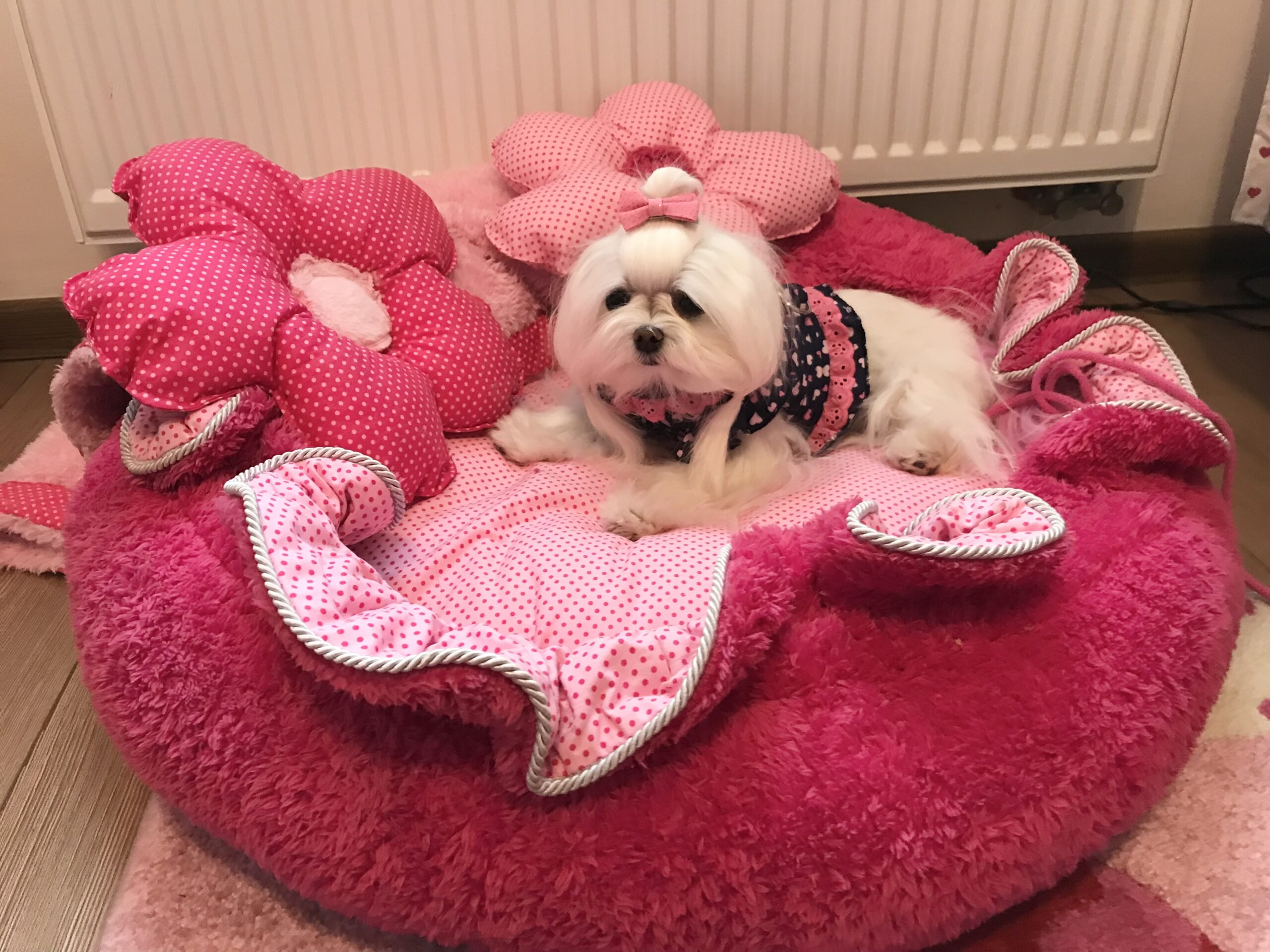 Schöne und praktische Spange(Klip).Die schöne Schleife besteht aus Stoff.Für einen besseren Halt hat die 4 cm lange Spange kleine Zähnchen.Das verhindert,daß sie von den Hundehaaren abrutscht.Die Spange ist besonders für Rassen geeignet wie shitzu,Havaneser,York,Malteser