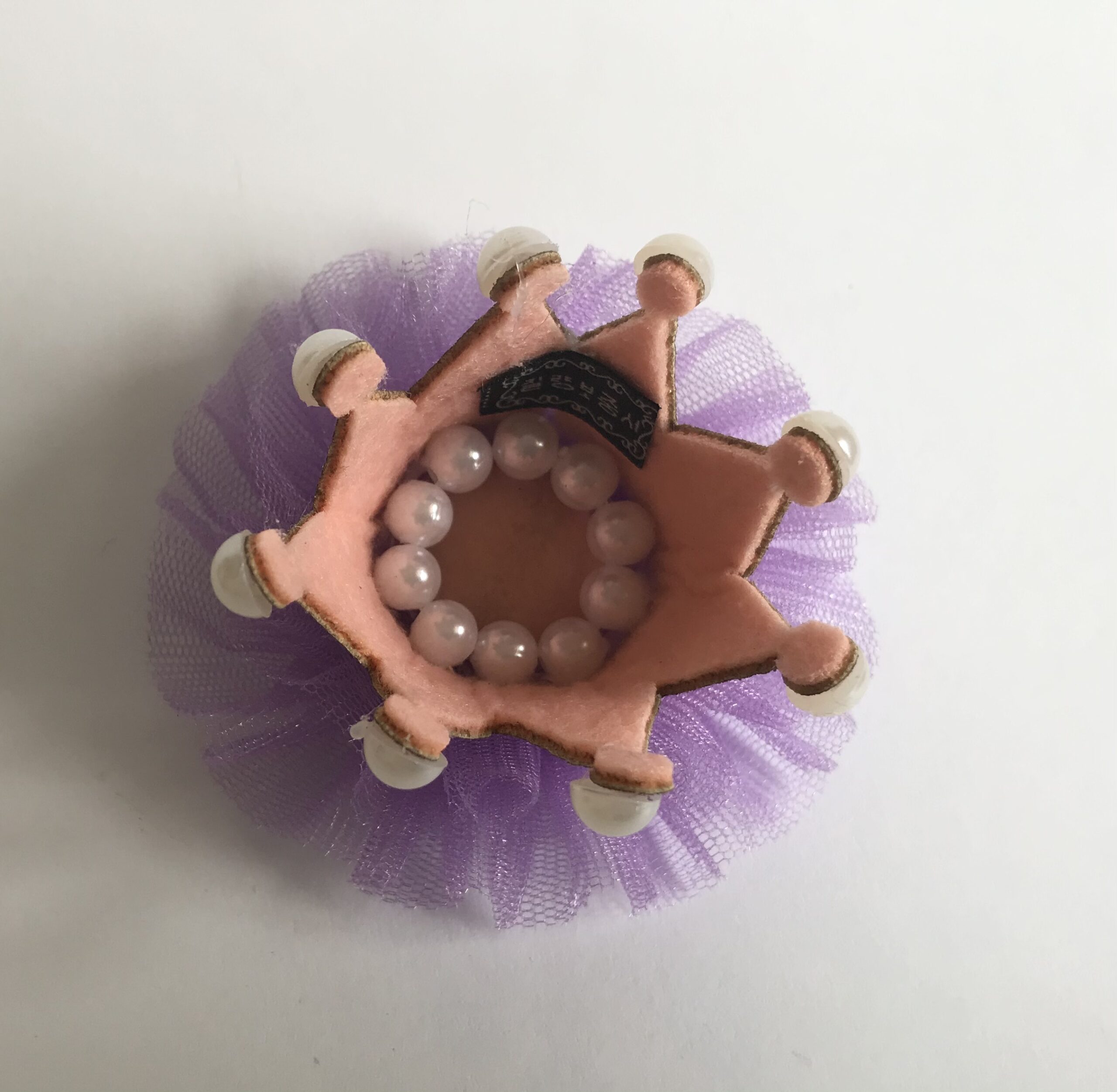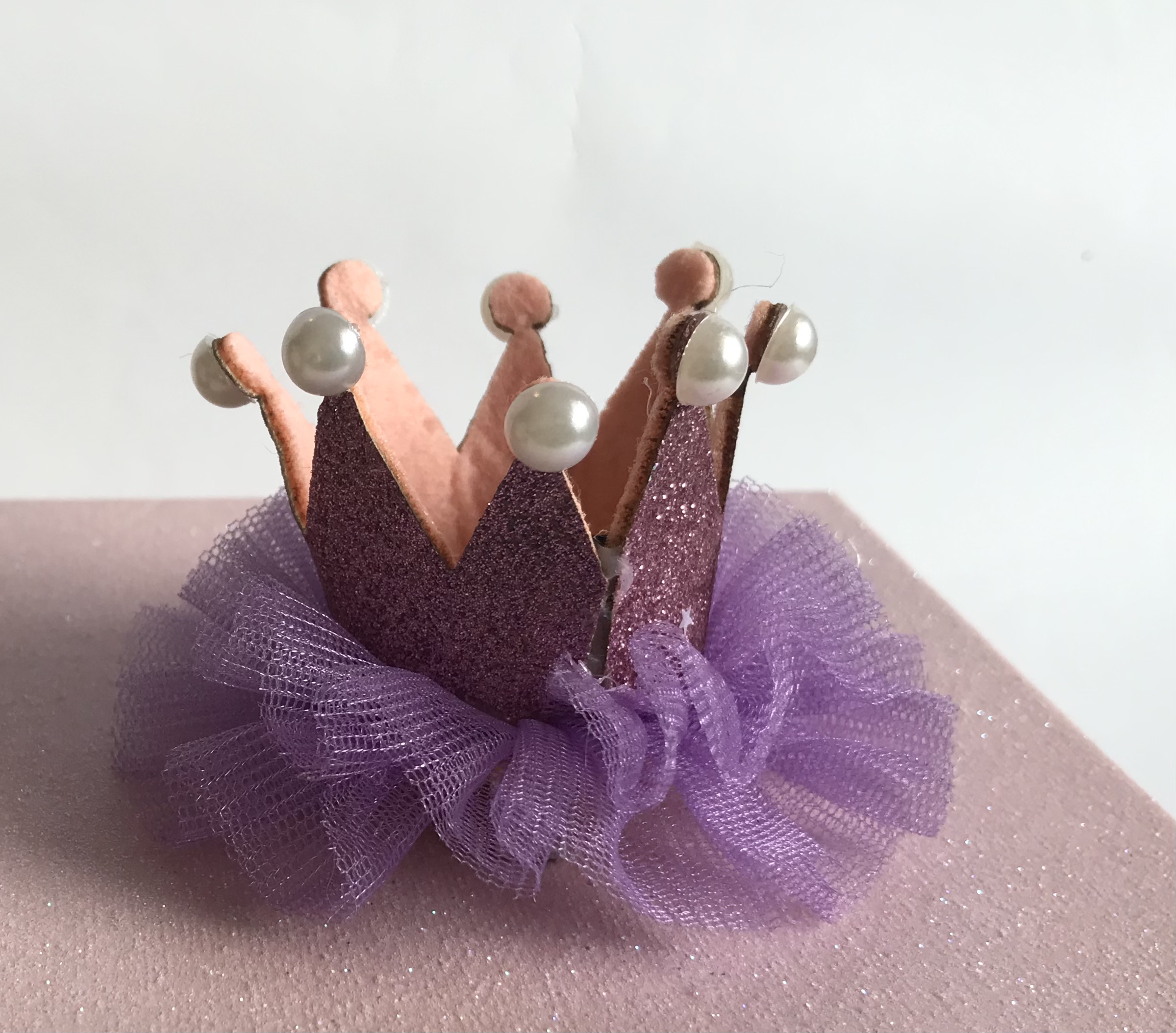 Die Krone ist ca.5 cm Hoch.Auf dem Tüll ist diese Krone mit Perlen befestigt.