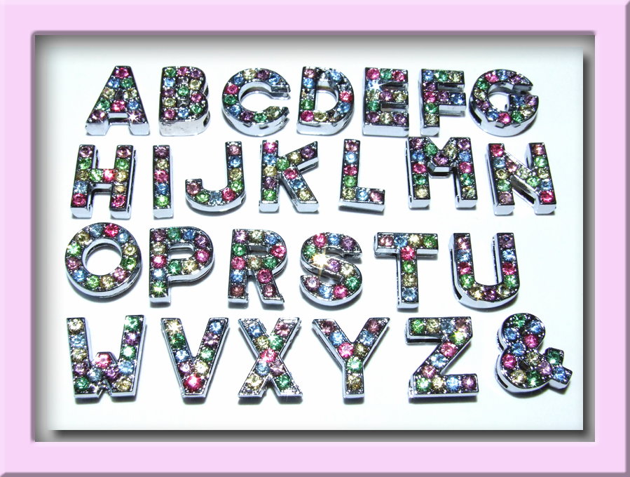 Buchstaben mit Strass-Steinen.Passen auf Halsbänder mit einem Band der ca 1 cm Breit ist.