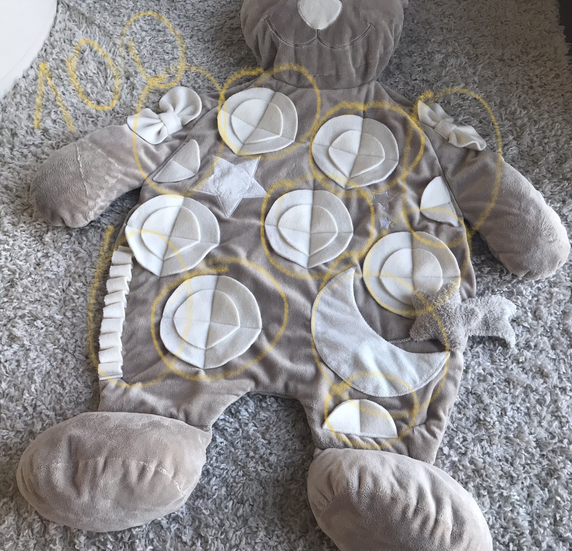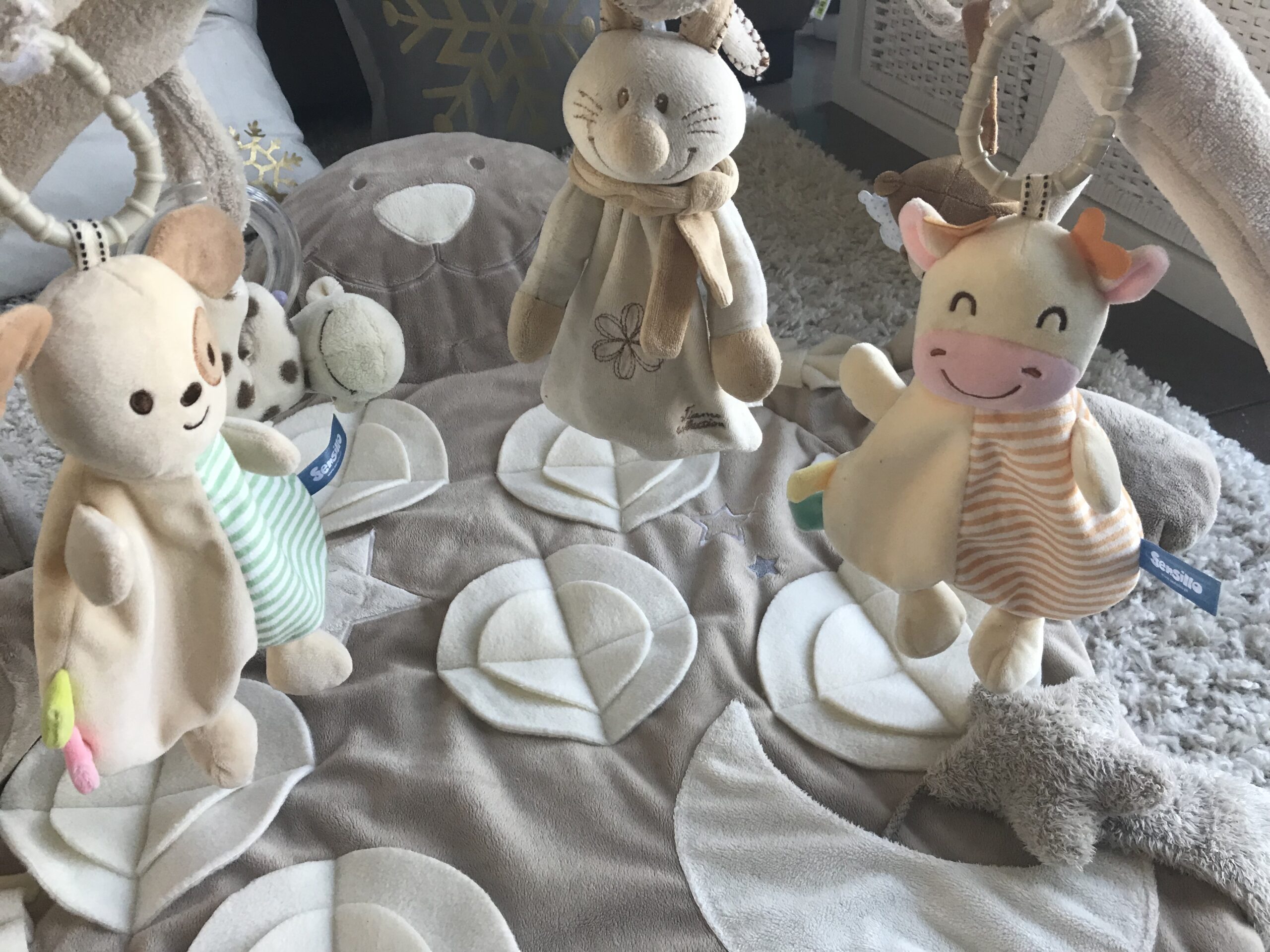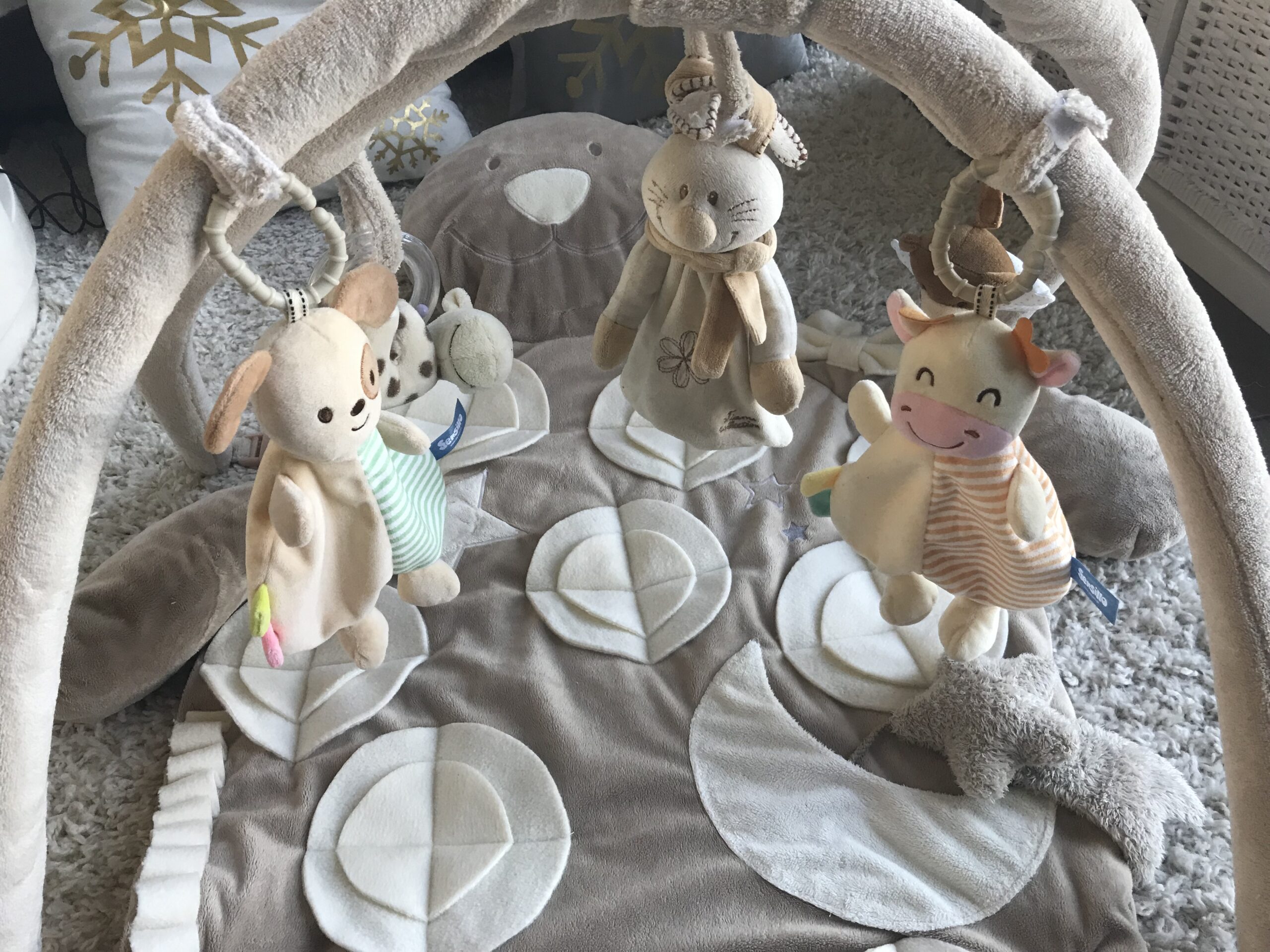Diese Spielmatte hat noch zusätzlich zwei Rundbögen mit Spielzeugen.