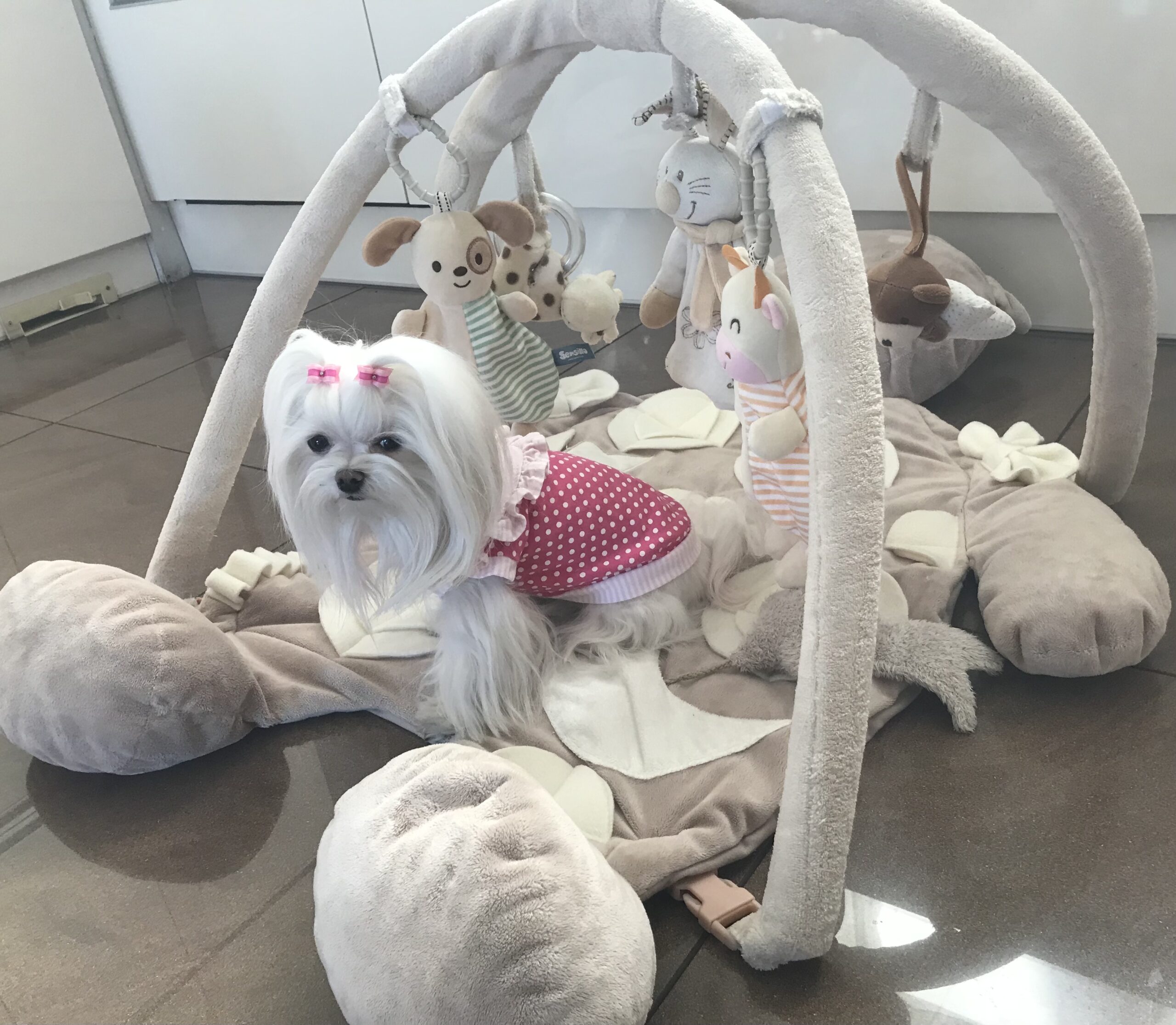 Das ist besonders gut für kleine Hunde und besonders für die Welpen, welche sehr viel Spaß damit haben. Sie können auf die Bögen auch eigenes Spielzeug aufhängen.