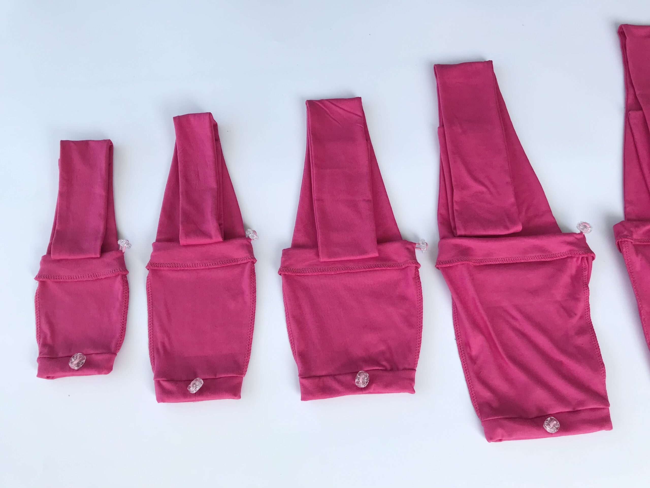 Dank Gummikordel und Stopper, kann unten die Stulpe, an den Pfotenumfang und Länge angepasst werden. Breite am Bein oben ist ebenso durch Stopper regulierbar