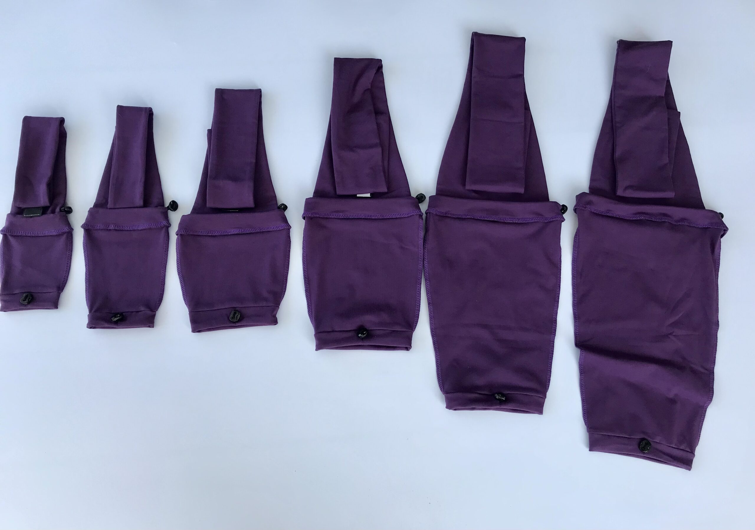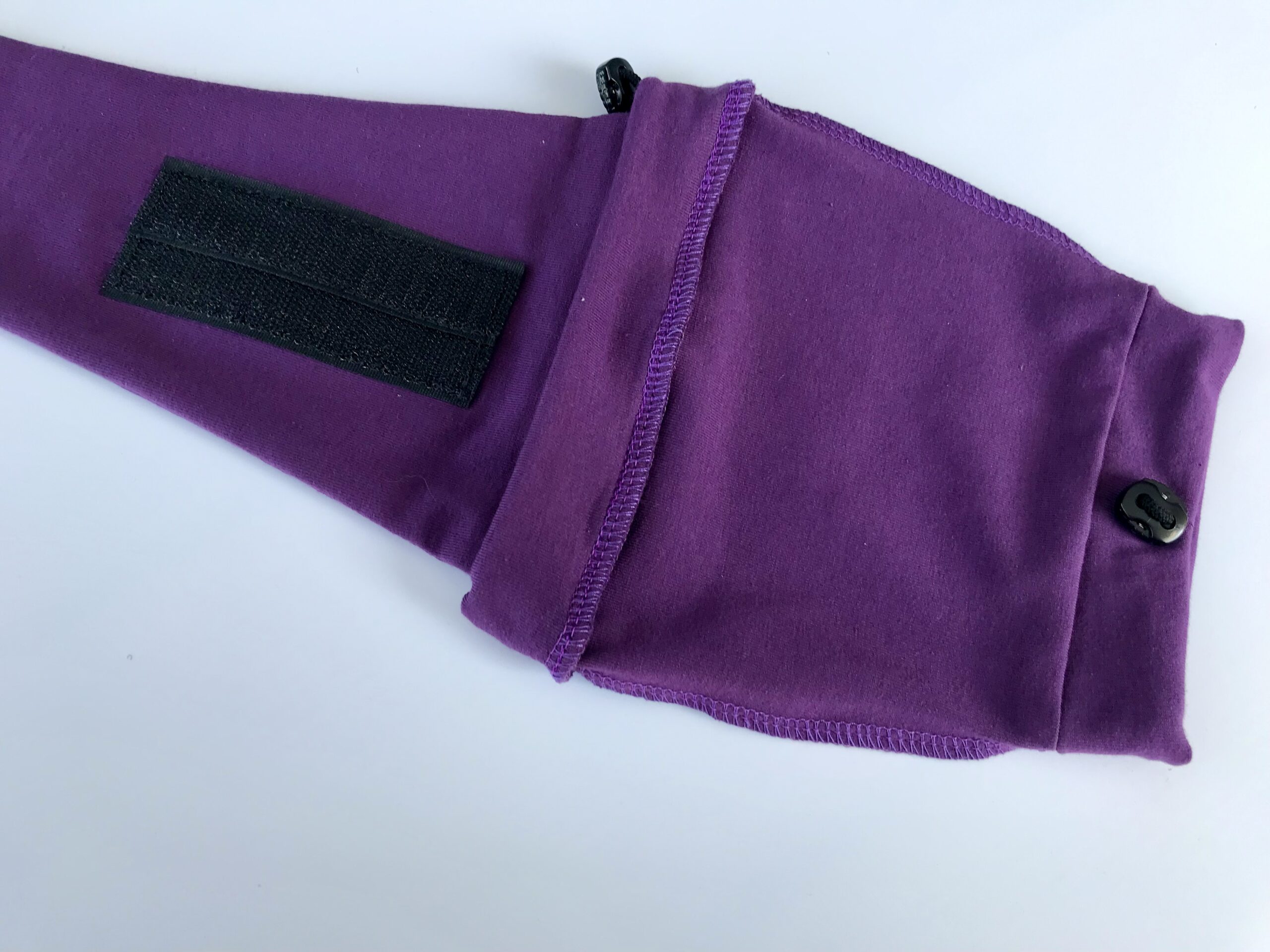 Dank Gummikordel und Stopper, kann unten die Stulpe, an den Pfotenumfang und Länge angepasst werden. Breite am Bein oben ist ebenso durch Stopper regulierbar